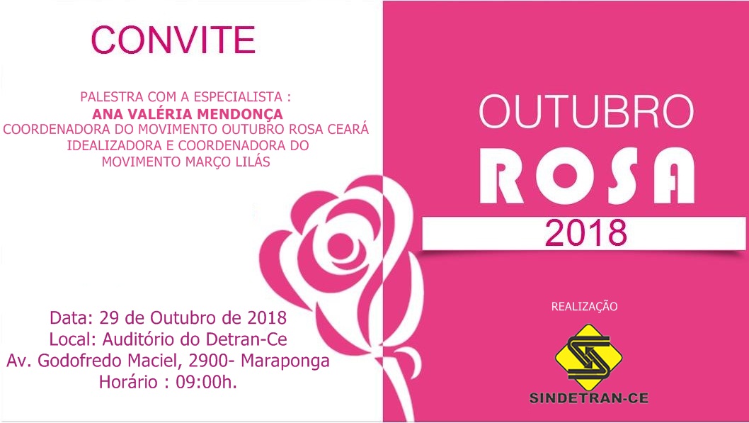O Sindicato dos Trabalhadores na Área de Trânsito do Ceará (Sindetran-ce) convida todas as servidoras ativas e aposentadas a participarem da palestra sobre prevenção do