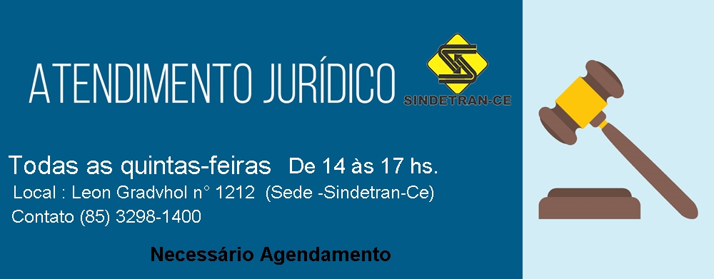 Prezados Servidores, a partir do dia 18.10.2018, a Assessoria Jurídica do SINDETRAN/CE retomará o seu atendimento normal junto aos servidores do DETRAN/CE, sempre às quintas-feiras
