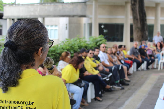 A presidente do Sindetran/CE, Eliene Uchoa, iniciou o discurso pontuando que, mesmo com o Plano de Cargos, Carreiras e Salários, os trabalhadores acumulam perdas, já que o projeto não foi regulamentado. A ascensão funcional e seus entraves atribuídos pela gestão foi outro ponto bastante discutido entre os servidores que, também recordaram os demais pontos reivindicatórios autorizados pelo governador Camilo Santana.
